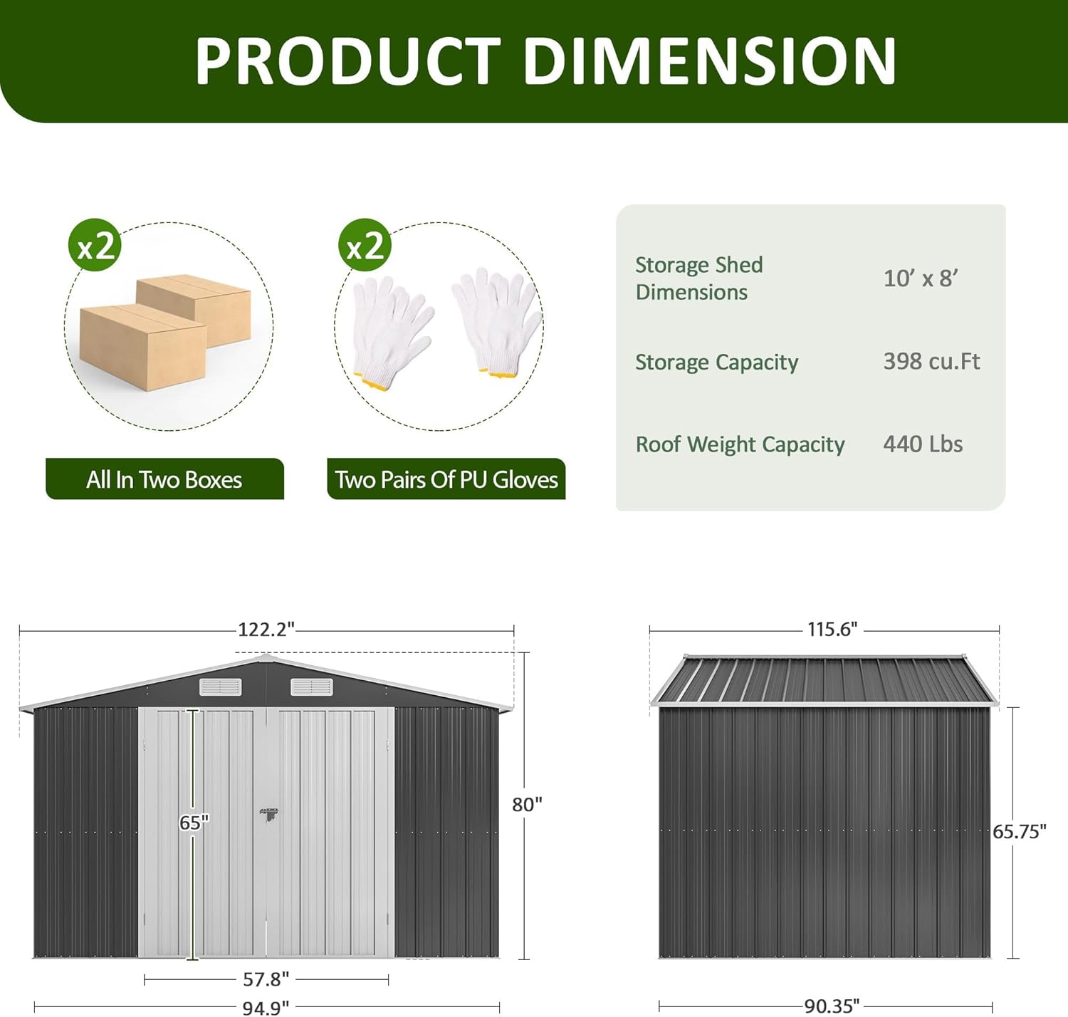 10x8 FT Outdoor Storage Shed, Metal Garden Tool Shed with Updated Frame Structure and Lockable Doors, Ideal for Backyard Garden Patio Lawn, Grey