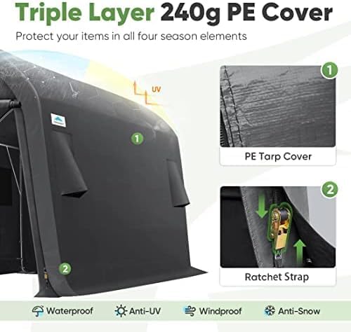 ADVANCE OUTDOOR 10X15 ft Storage Shed Carport Steel Metal Round Peak Roof Portable Garage Shelter for Motorcycle, Boat, and Garden Tools with 2 Roll up Doors & Vents-Dark Gray