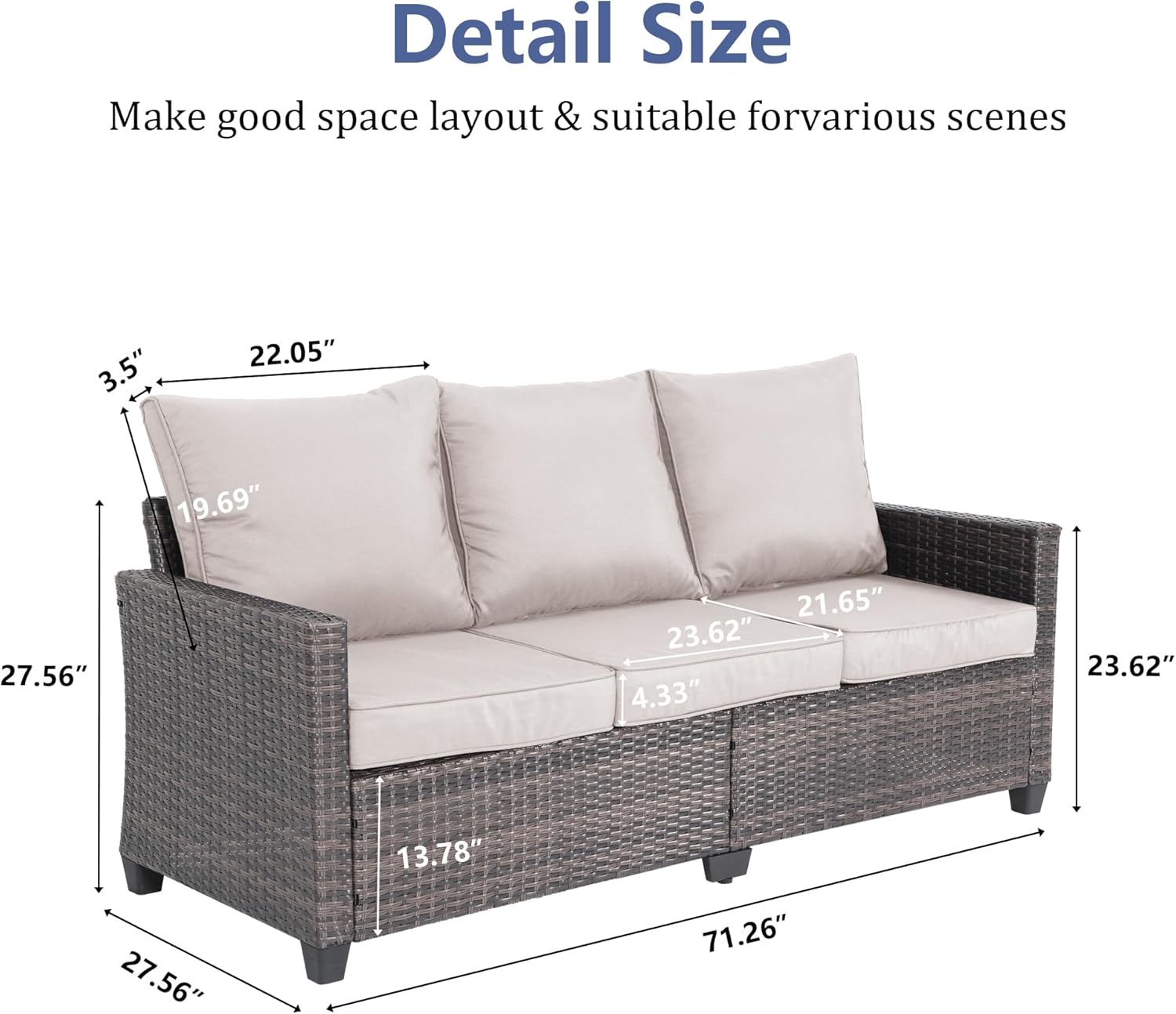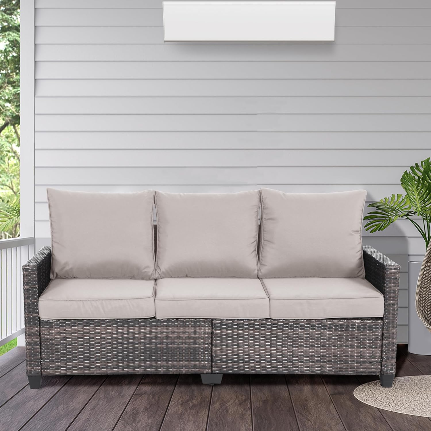 All Weather Patio Sofa, 3 Seat Outdoor Couch with High Back and Thick Cushions,Outdoor Sofa Furniture with Premium Wicker for Garden, Backyard, Porch,Beige