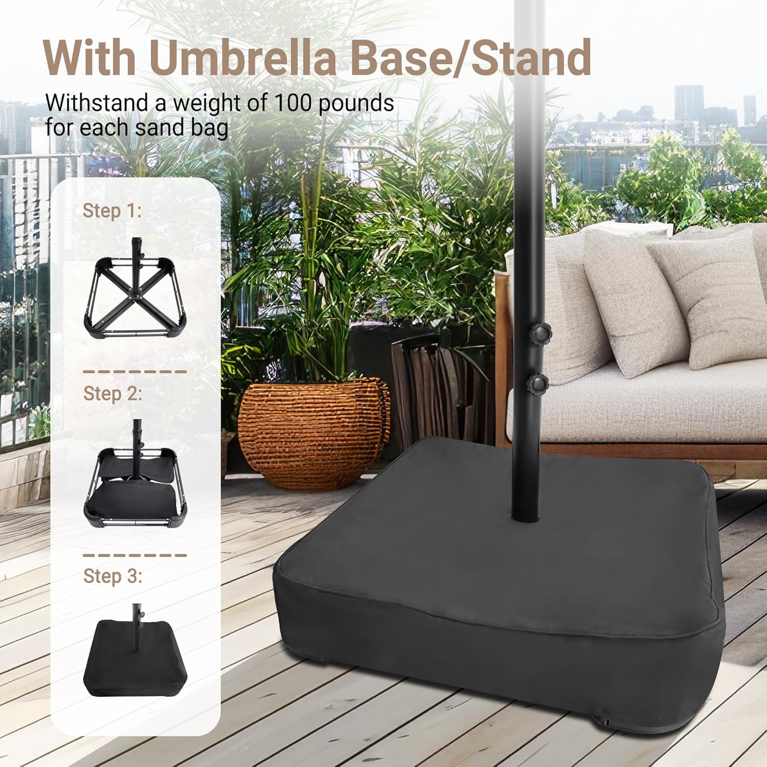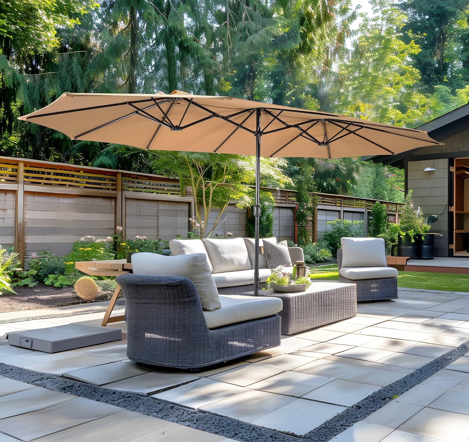 Bigroof 15ft x 9ft Patio Double-Sided Umbrella with Base & Crank, Extra Large Rectangular Outdoor Umbrella for Patio, Lawn & Garden, Beige