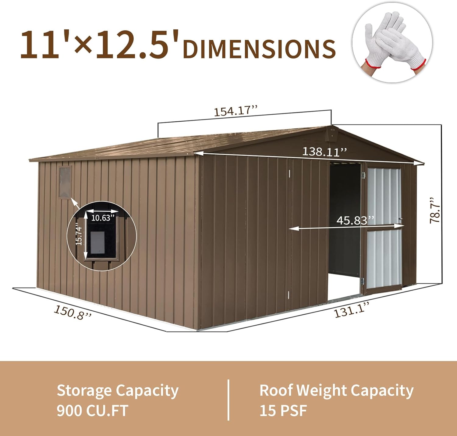 Engineered for durability and security, our metal storage sheds provide all-weather outdoor storage solutions crafted from rust-resistant galvanized steel. Available in sizes from compact 5x3ft to spacious 11x12.5ft, these garden sheds and tool sheds feature reinforced framing to withstand harsh sun, heavy rain, snow loads up to 70lb/sq ft, and hurricane-force winds (select models).