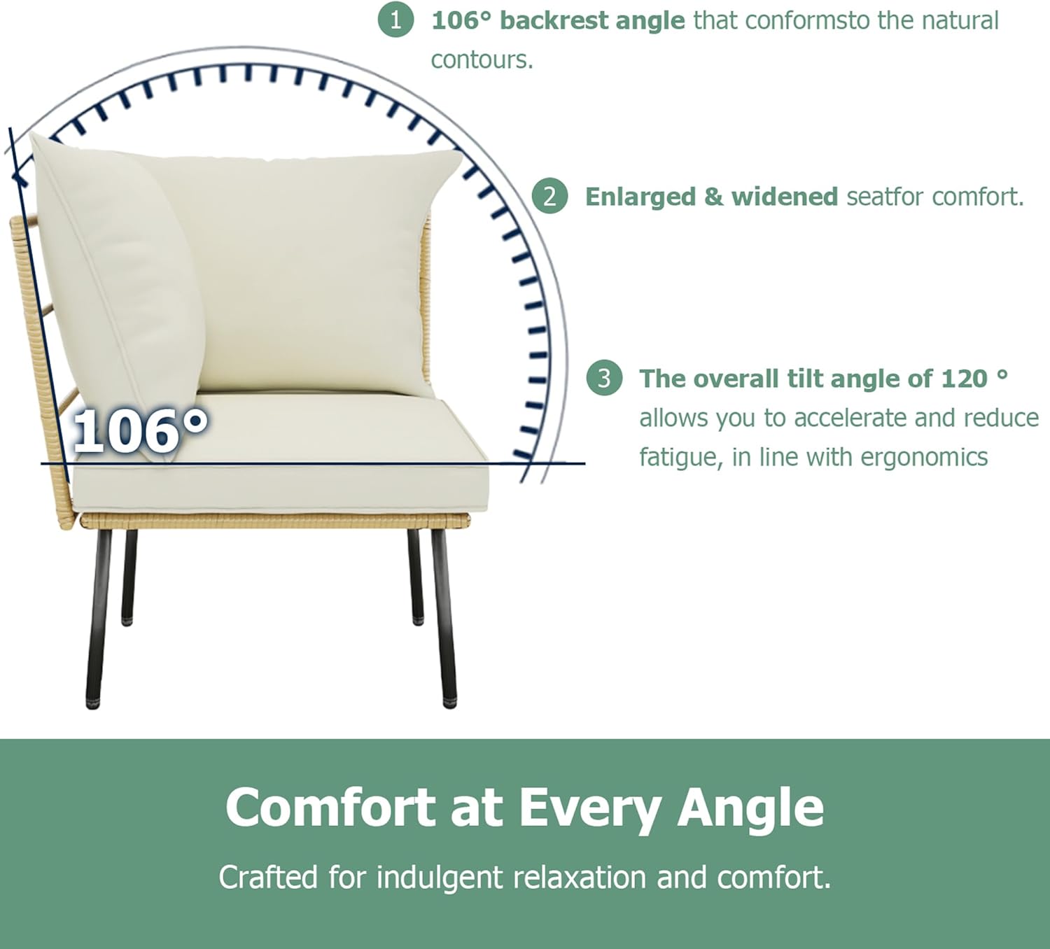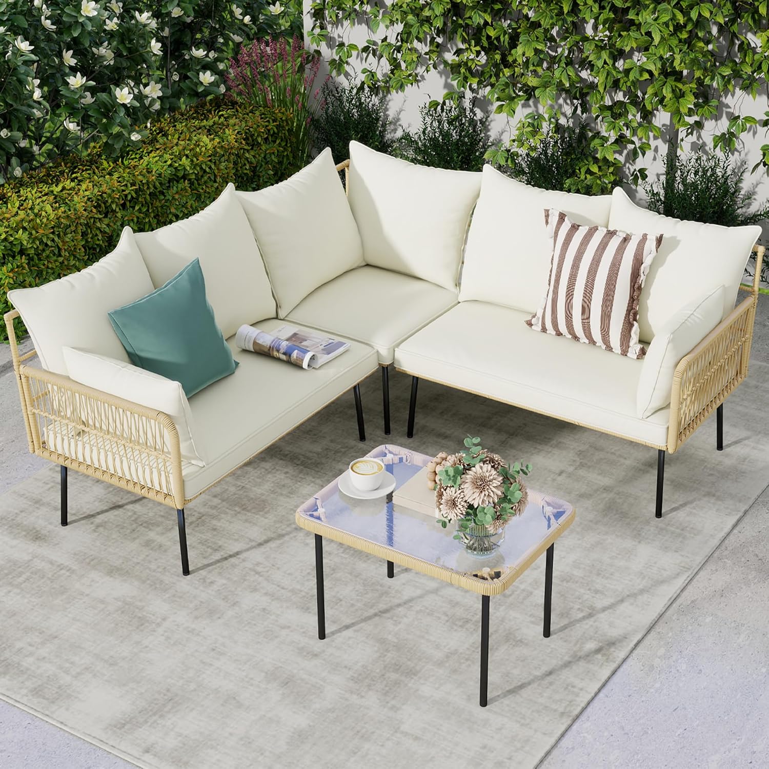 LYNSLIM Patio Furniture Set, Outdoor All-Weather Rattan Patio Sectional Couch Set, Boho Outdoor Sofa Set with Water Resistant Thick Cushions of Garden, Backyard (4 Piece Large Patio Furniture Set)