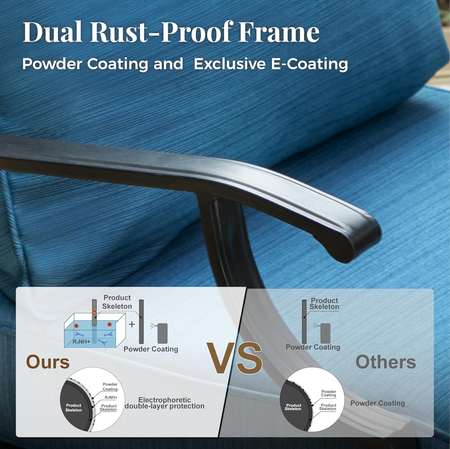Patio Furniture Set 6 pcs, Outdoor Patio Furniture, 1 X 3-Seat Sofa, 2 X Single Chairs, 2 X Swivel Chairs, 1 X Coffee Table and 5.75" Extra Thick Cushion, Patio Conversation Set,Gemstone Blue