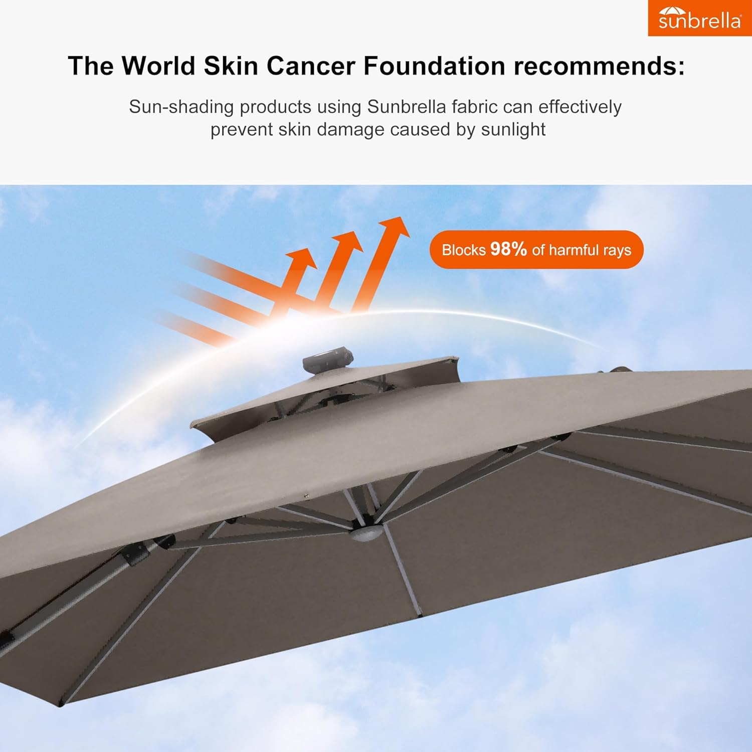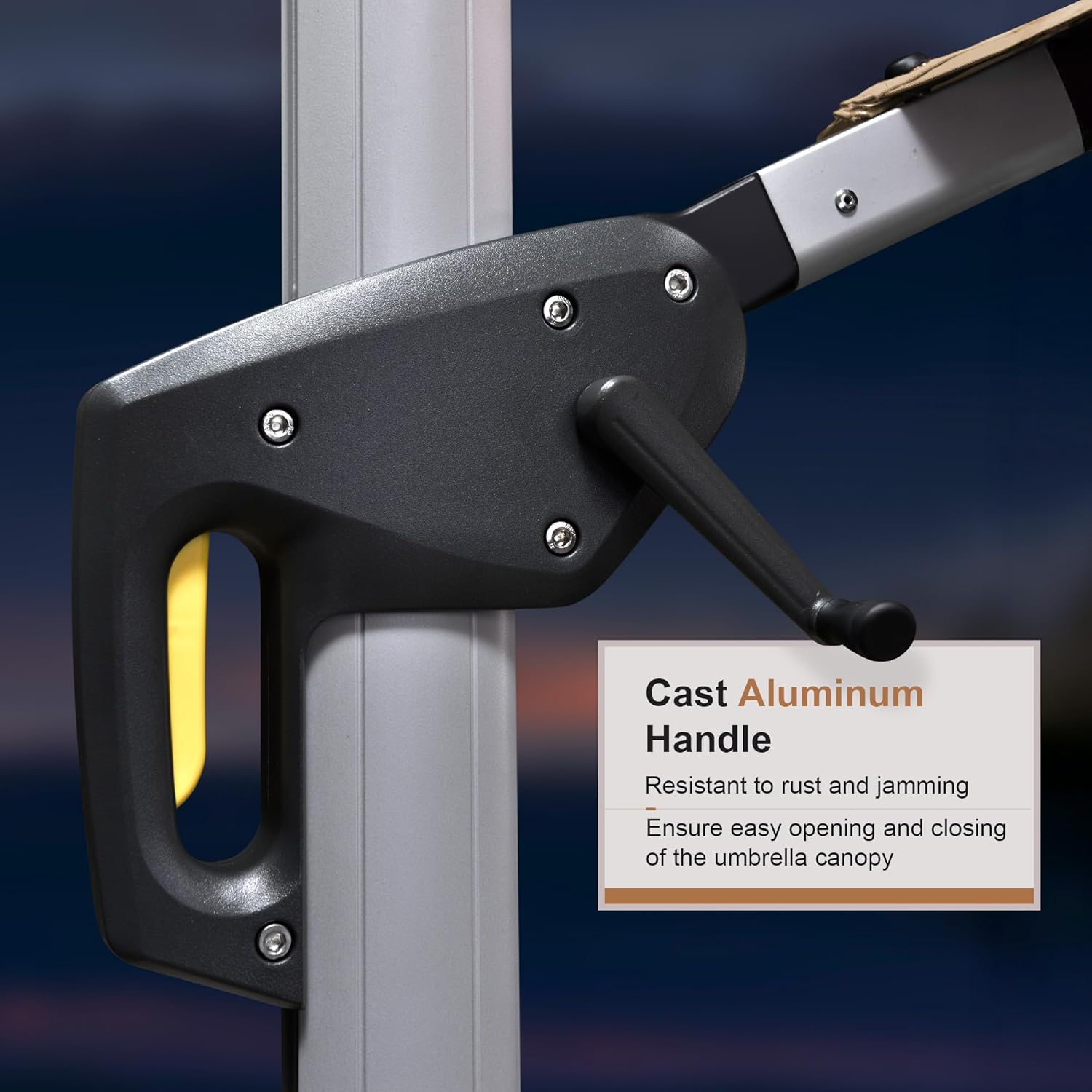 PURPLE LEAF 9' X 12' Solar Powered LED Patio Umbrella Cantilever Umbrellas Offset Double Top Hanging Outdoor Umbrella Market Umbrellas for Garden, Heather Taupe