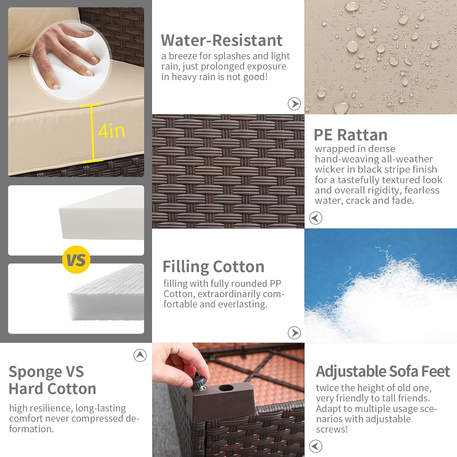 Material: steel frame, high-density polyethylene(HDPE) wicker, high resilience sponge, 250g polyester fabric