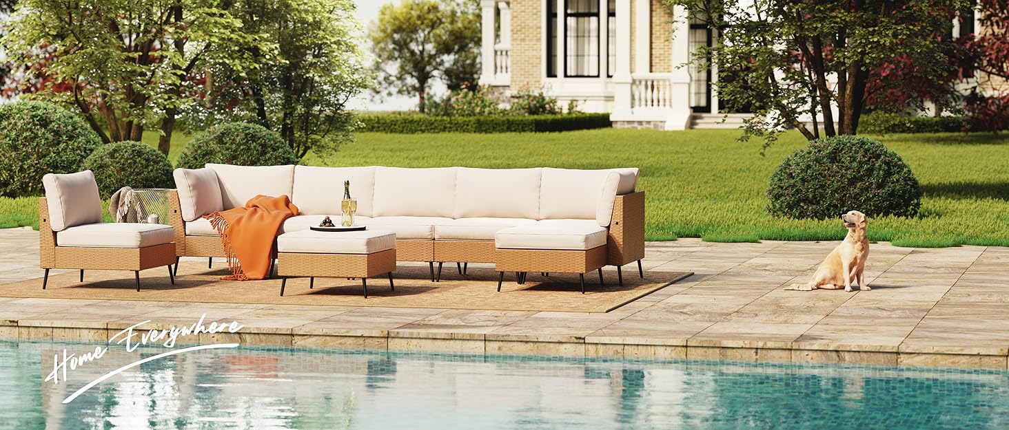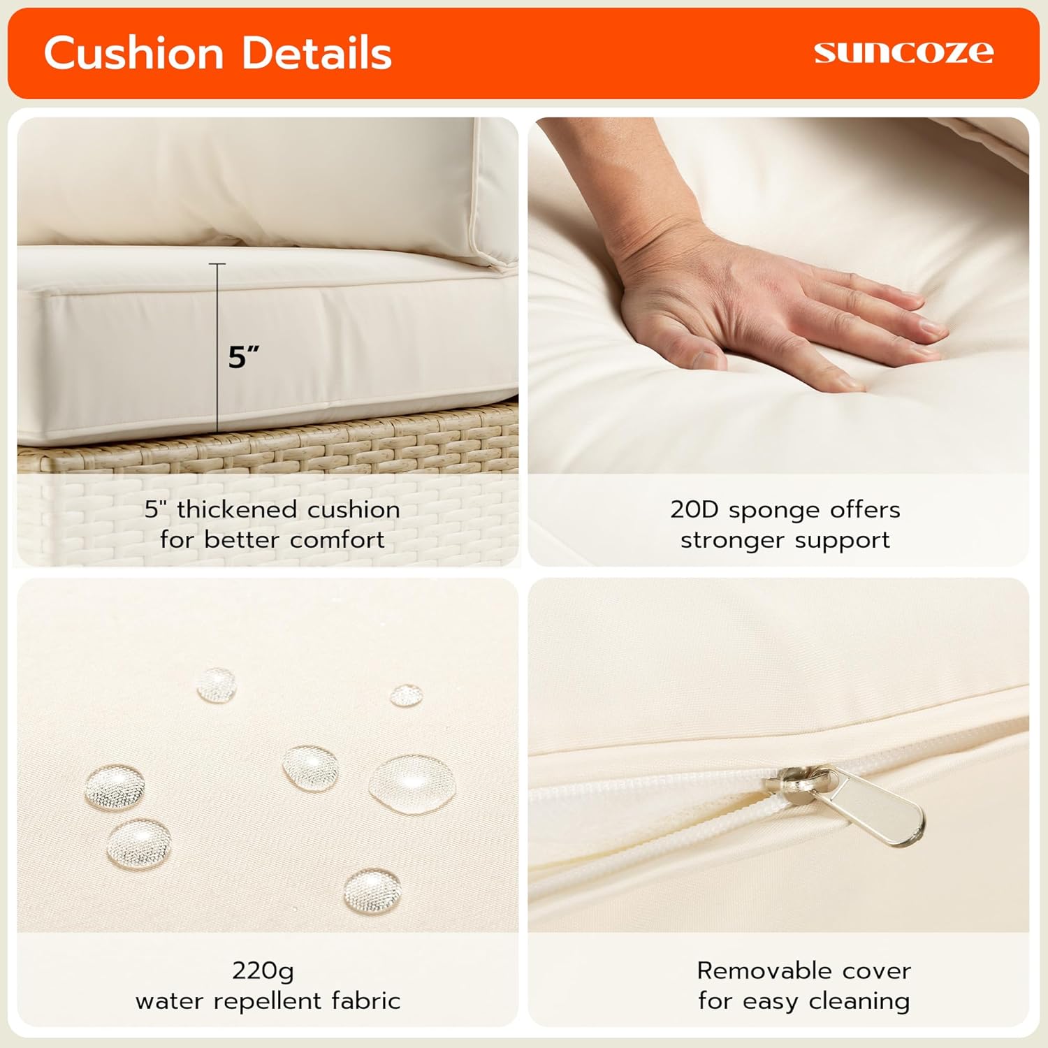 SUNCOZE 8 Pieces Outdoor Patio Furniture Sets, Outdoor Sectional Furniture PE Rattan Wicker Sofa Set, All Weather Patio Conversation Set with Cushion and Ottoman for Deck, Lawn and Pool