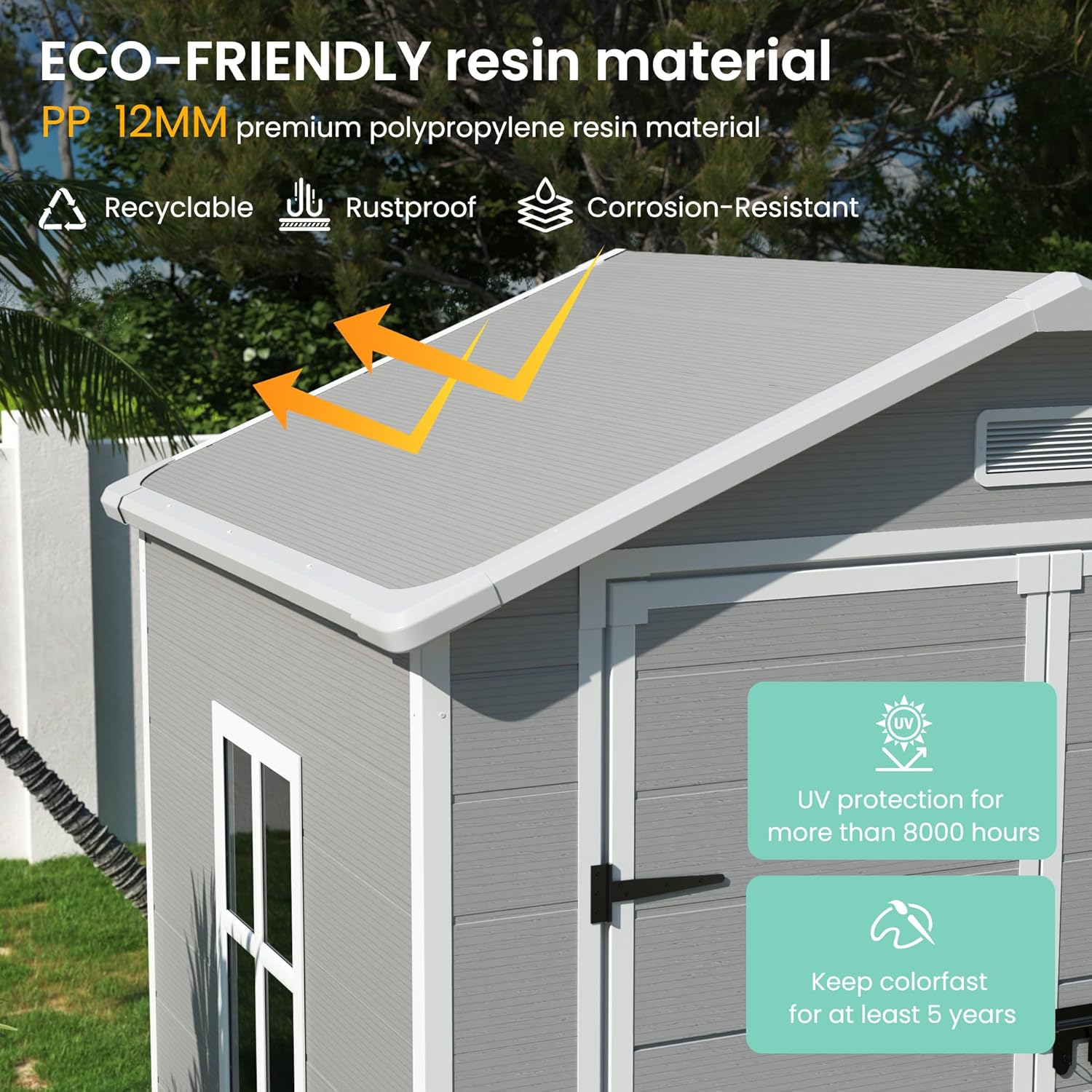 UDPATIO Outdoor Resin Storage Shed 6x4.5 FT, Plastic Garden Shed for Bike, Garbage Can, Tool, Outside Sheds with Lockable Door for Backyard, Patio, Lawn, Grey & White