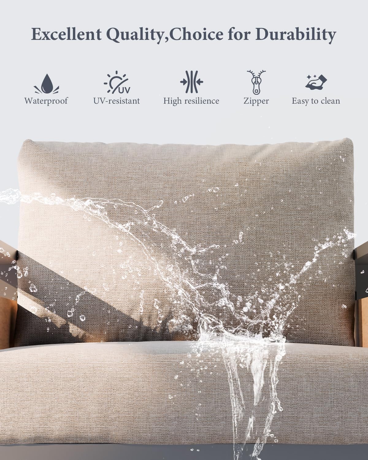 Breathable Fabrics, waterproof, with removable cushion covers designed for easy cleaning, keeping your patio sofa looking fresh and new.